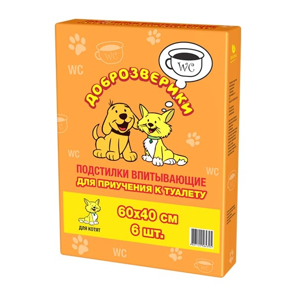Когда в доме появляется новый маленький обитатель, перед хозяевами встаёт непростая задача: как приучить малыша к туалету? В большинстве случаев результат достигается путём затраты огромного количества времени, нервных клеток и пар обуви. Теперь Вы можете вздохнуть с облегчением: любимец будет ходить в туалет туда, куда положено, и это произойдёт легко и быстро, ведь у Вас есть подстилки «Доброзверики» для приучения котят к туалету! Подстилки содержат специальные аттрактанты – аналоги природных ферментов, которые за короткий промежуток времени вырабатывают у котёнка стойкую привычку ходить в туалет в отведённое для него место. Подстилки гипоаллергенны и безопасны для здоровья животного.