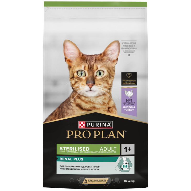 Команда квалифицированных ветеринарных специалистов разработала рацион PRO PLAN® Sterilised RENAL PLUS для взрослых стерилизованных кошек для поддержания здоровья почек*. Этот сбалансированный полнорационный сухой корм c высокой вкусовой привлекательностью создан с учетом потребностей питомцев в высококачественном белке, а также витаминах и минералах, важных для здорового функционирования организма.