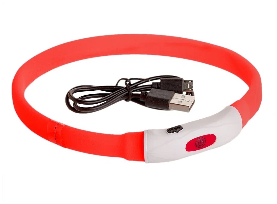 Ошейник TopPet Красный, светодиодный, M (55см)