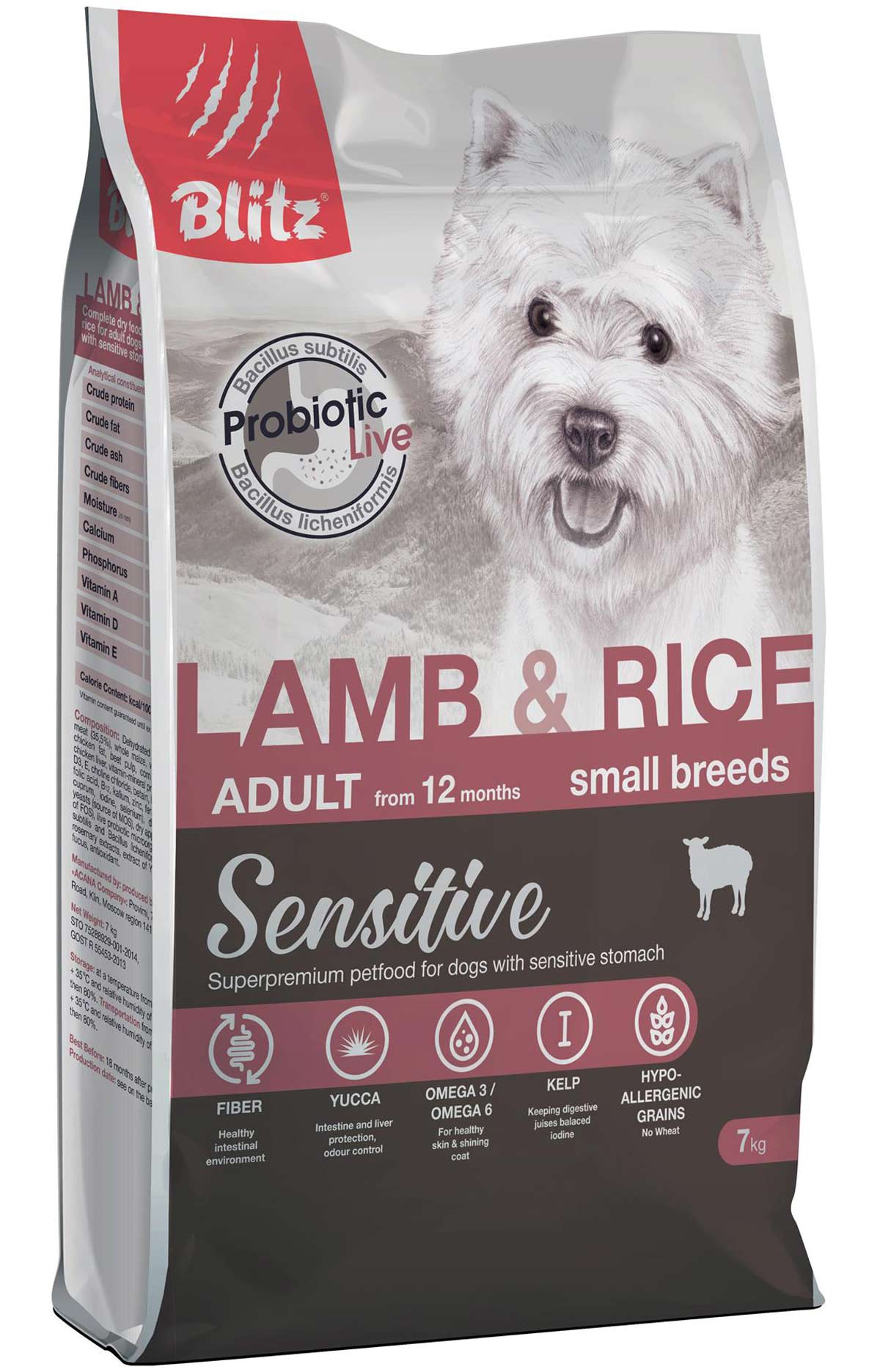BLITZ Sensitive с Ягненком для Собак Мелких пород 7кг