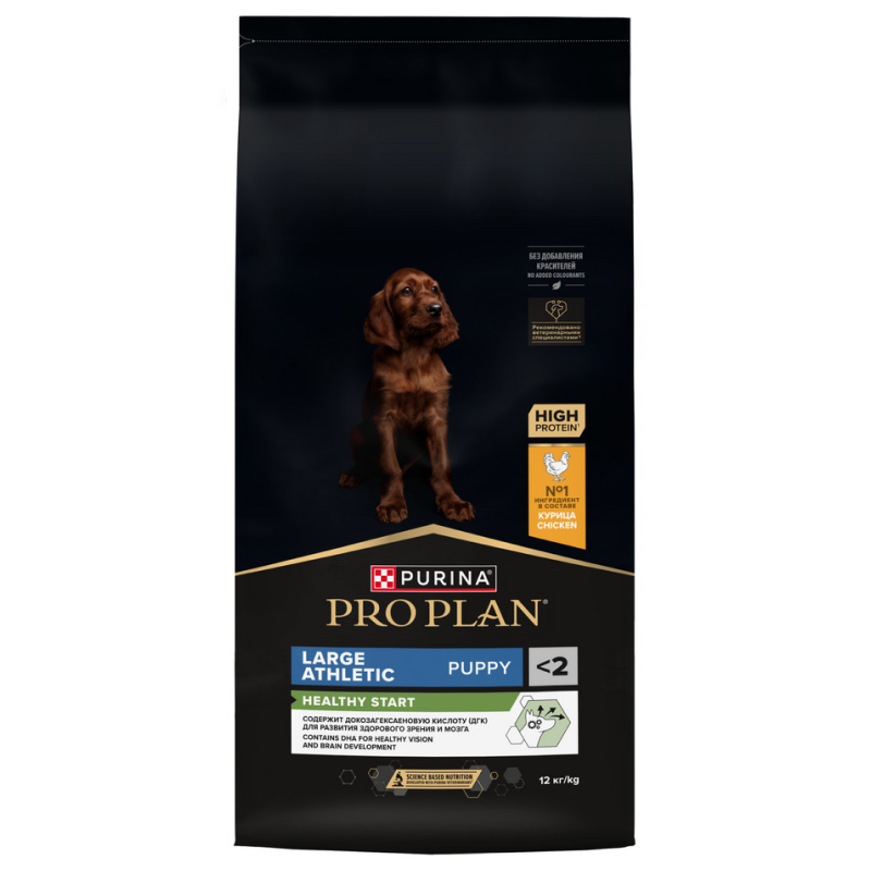 Сухой корм PRO PLAN HEALTHY START для щенков крупных пород с атлетическим телосложением, c курицей, 12 кг
