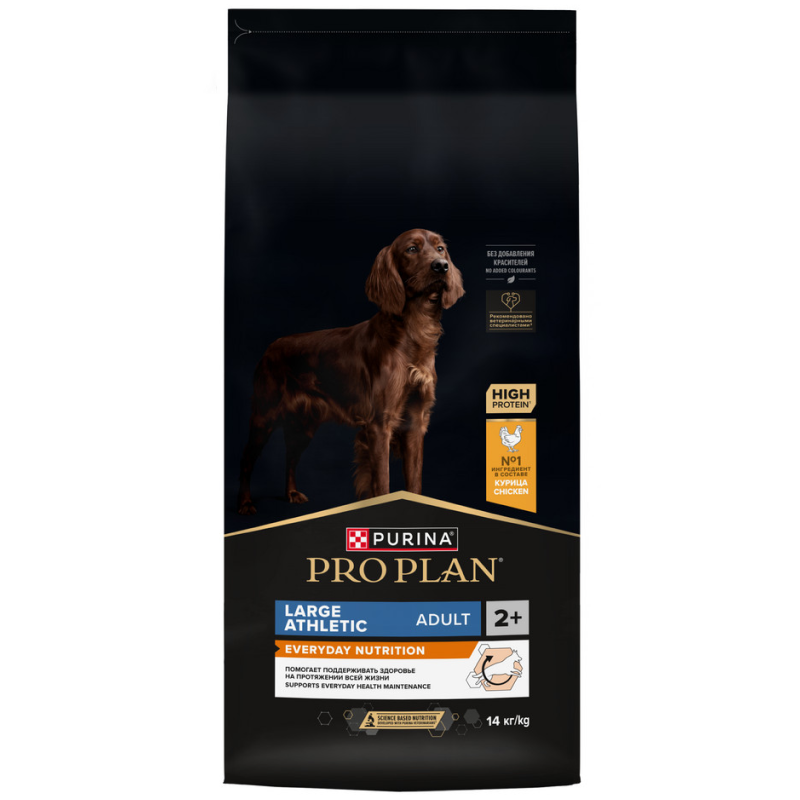 Изучая потребности собак на протяжении многих лет, команда квалифицированных ветеринарных специалистов и диетологов PURINA разработала сухой корм PRO PLAN® EVERYDAY NUTRITION — ежедневный рацион с высоким содержанием курицы для взрослых собак крупных пород с атлетическим телосложением. Этот полнорационный корм сбалансирован по составу и помогает поддерживать здоровье вашей собаки на протяжении всей жизни.