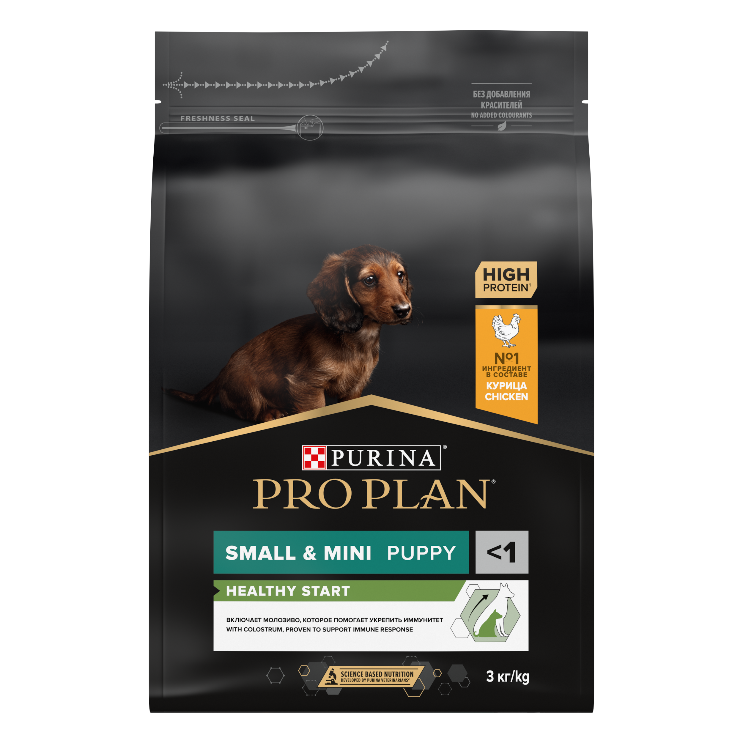 Изучая потребности щенков на протяжении многих лет, команда квалифицированных ветеринарных специалистов и диетологов PURINA разработала сухой корм PRO PLAN® Healthy start (здоровый старт) для щенков с 6 недель* — ежедневный рацион с высоким содержанием курицы для щенков мелких и карликовых пород. Этот полнорационный корм сбалансирован по составу.