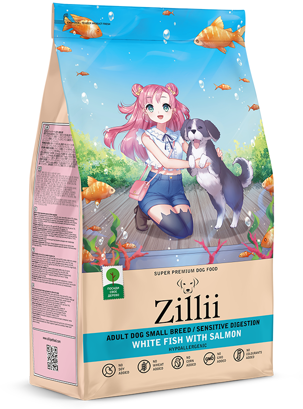 ZILLII Adult Dog Small Breed Sensitive Digestion для Собак мелких пород 800г Белая Рыба с Лососем