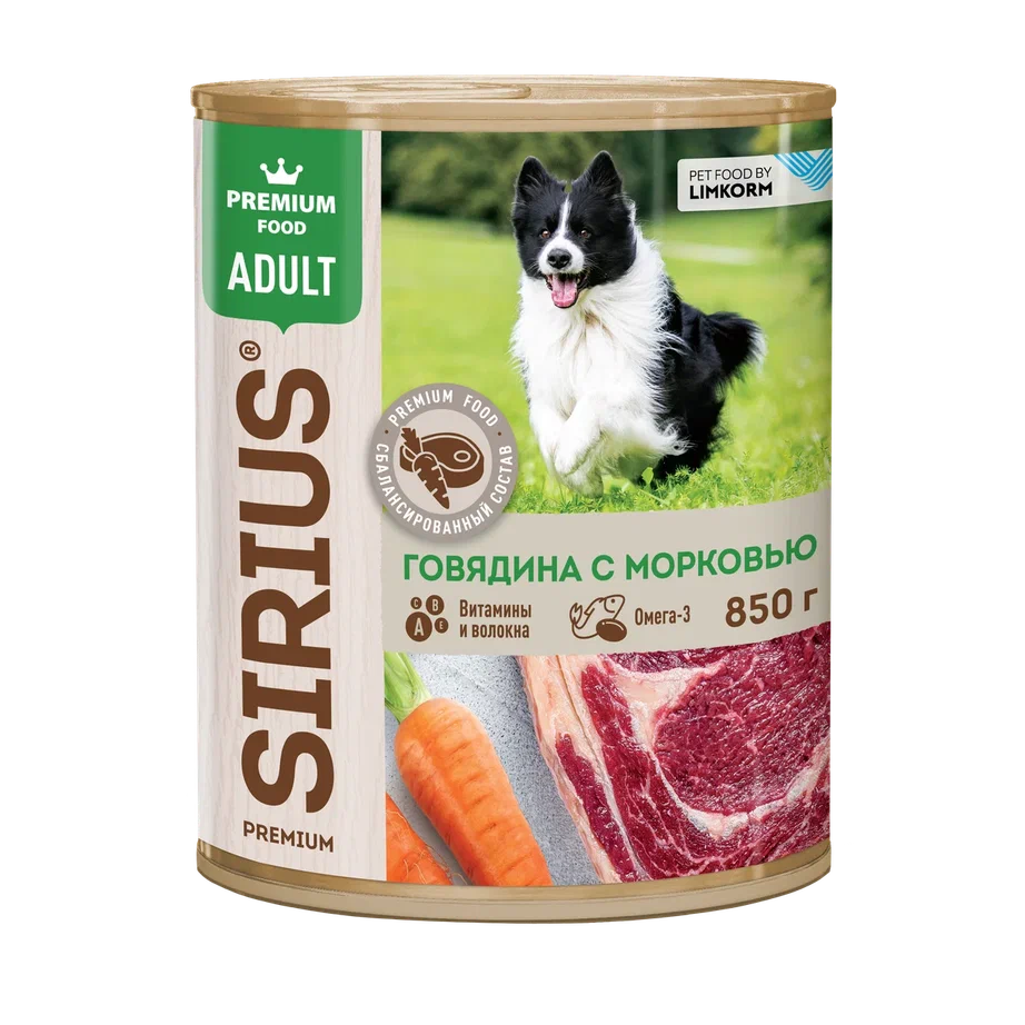 конс. SIRIUS для Собак с Говядиной и Морковью 850г