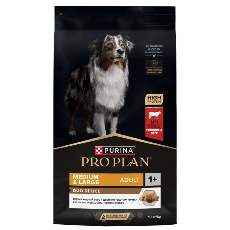 Сухой корм PRO PLAN DUO DELICE для взрослых собак средних и крупных пород, с высоким содержанием говядины, 10 кг