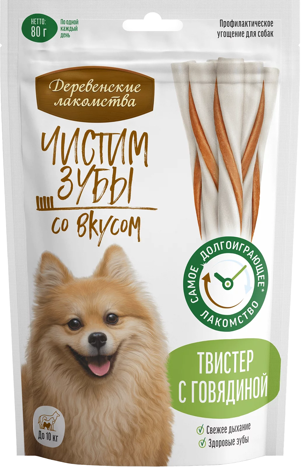 Твистер с говядиной для собак мелких пород — наше самое долгоиграющее лакомство. Эффективно удаляет зубной налет, предотвращая образование зубного камня. Мясная начинка приготовлена из отборных ингредиентов и не содержит искусственных консервантов и красителей. Теперь чистить зубы не только просто, но и вкусно!