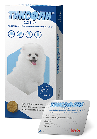 Таблетка Тиксфли для Собак 2-4,5кг от внешних паразитов 112,5мг