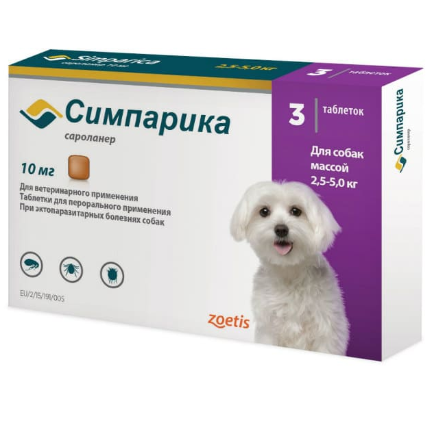 Таблетки Симпарика 10мг для Собак от 2,5-5кг (3шт)