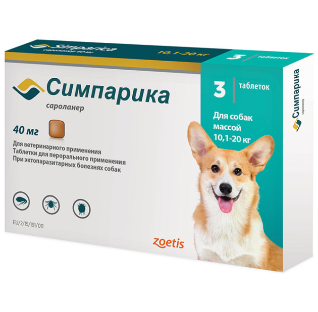 Таблетки Симпарика 40мг для Собак от 10-20кг (3шт)