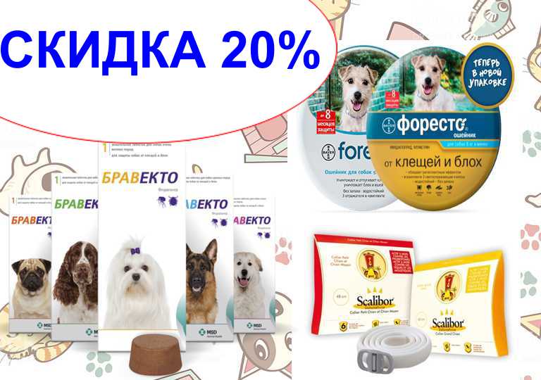Акция на антипаразитарные ошейники и таблетки от блох и клещей Бравекто