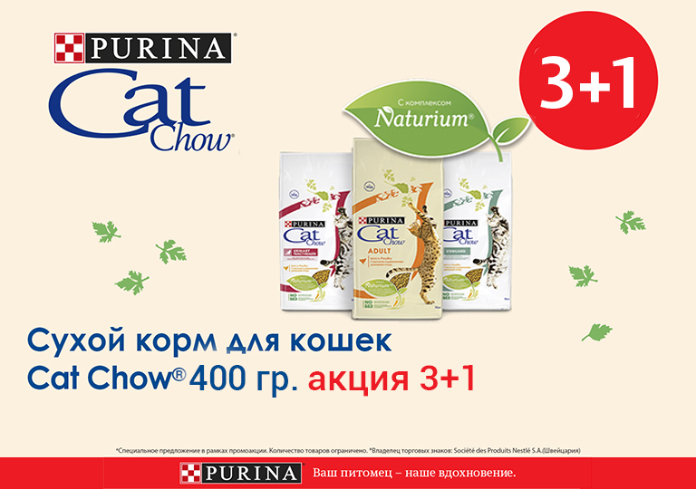 Акция на корма Cat Chow 400гр. 3+1