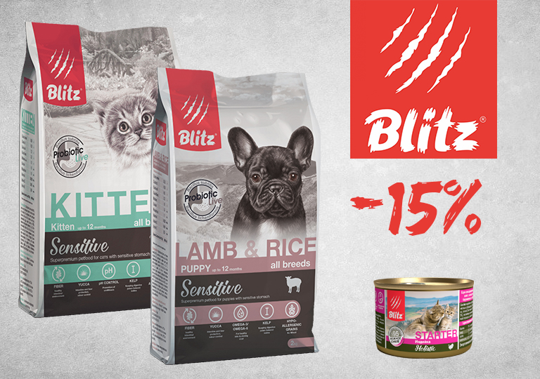 Акция на корма для котят и щенков Blitz