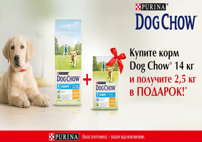 Акция на корма Dog Chow 14кг +2.5кг В ПОДАРОК!