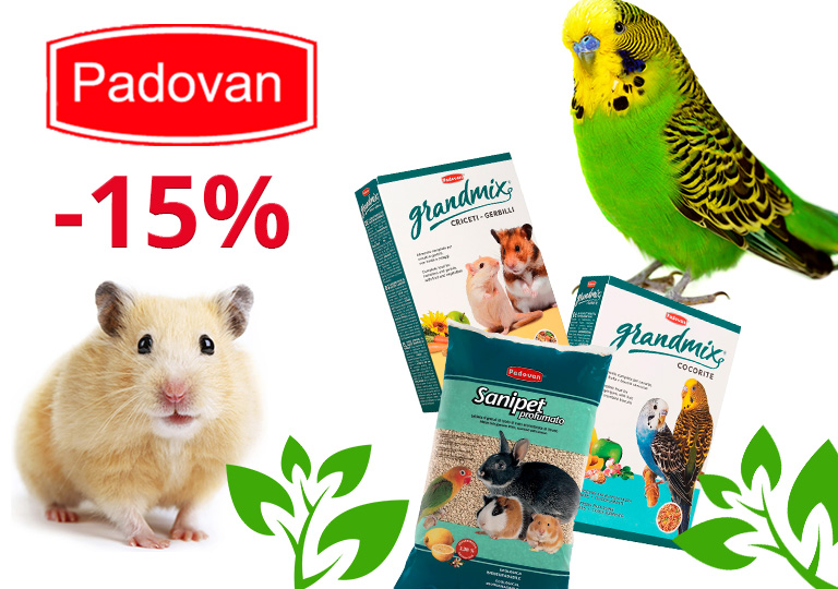 Акция на корма и наполнители Padovan для птиц и грызунов