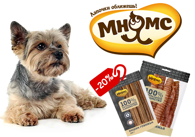 Акция на лакомства для собак Мнямс