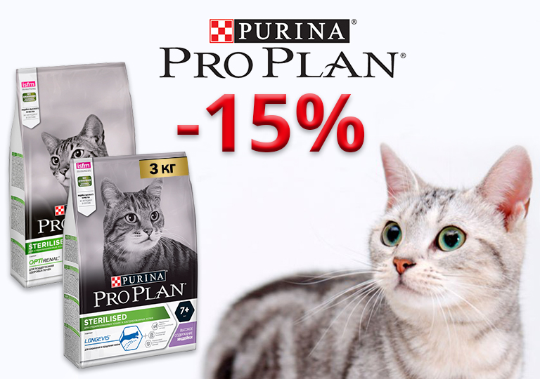 Акция на сухие корма для кошек ProPlan (3 кг)