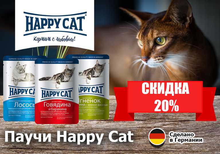 Акция на паучи Хэппи Кэт - 20% с 20.07.19 по 01.09.19