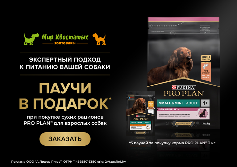 Акция на ProPlan Dog 3кг + подарок 5 паучей