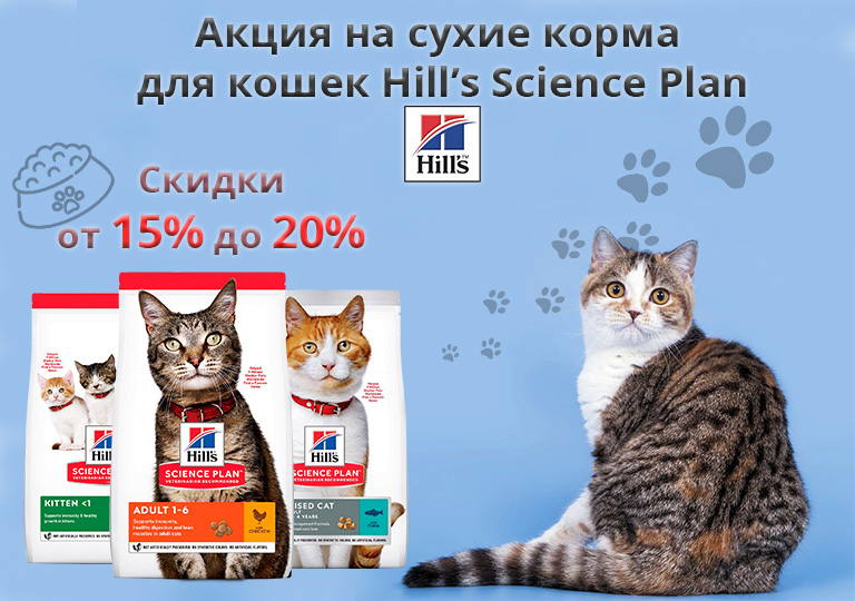 Акция на сухие корма для кошек Hill's Science Plan