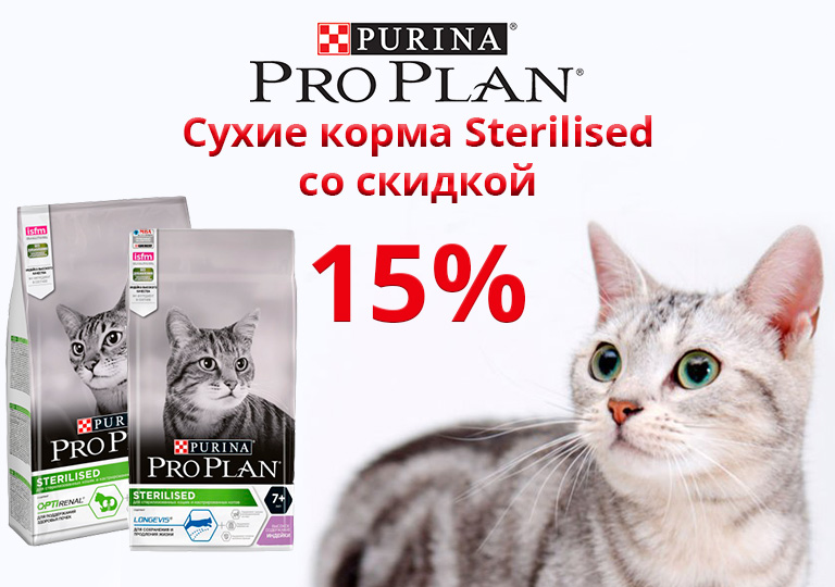Акция на сухие корма для стерилизованных кошек ProPlan