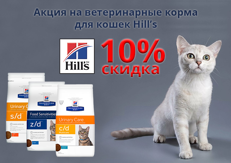 Акция на сухие ветеринарные корма для кошек Hill's