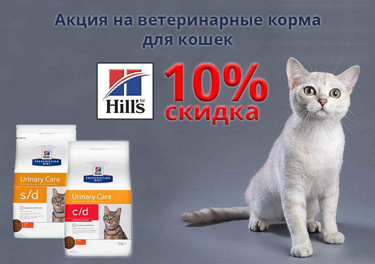 Акция на ветеринарные корма для кошек Hill's "Профилактика мочекаменной болезни"
