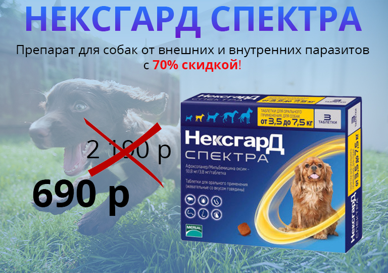 Акция на жевательные таблетки против блох, клещей и гельминтов НексгарД Спектра