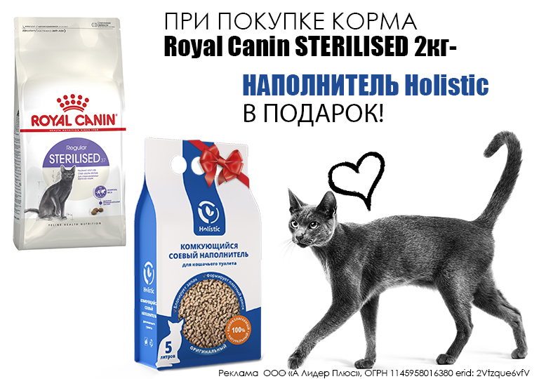 Акция: при покупке Royal Canin STERILISED 2кг в подарок наполнитель Holistic